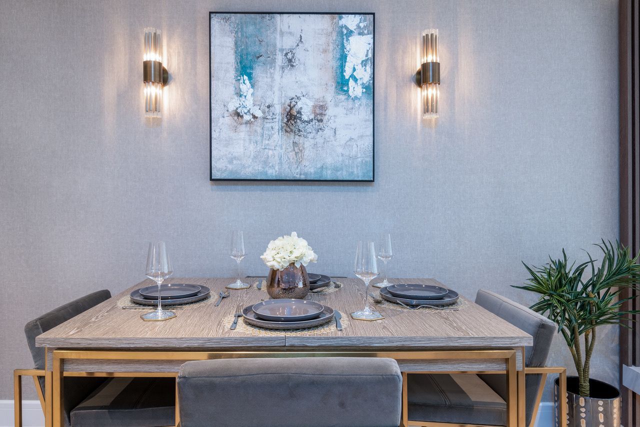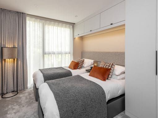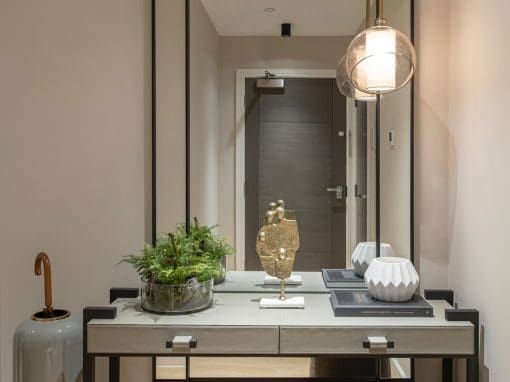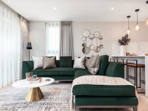 A beautiful two bedroom apartment designed using a colour palette inspired by nature. The open plan living area is flooded with natural light and complimented by luxurious textures, creating a feeling of elegance and sophistication.